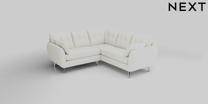 6.12.1 Buy Wilson Buttoned Back Small Corner Sofa - Universal Chunky Texture Oyster Metal Tapered - Chrome from the Next UK online shop Click here to use our accessible website