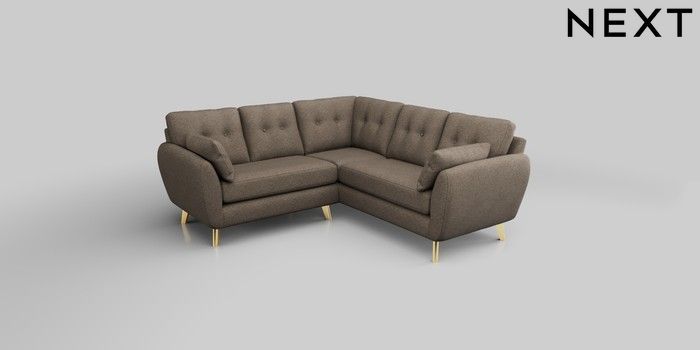6.12.1 Buy Wilson Buttoned Back Small Corner Sofa - Universal Chunky Weave Dark Natural Metal Tapered - Gold from the Next UK online shop Click here to use our accessible website