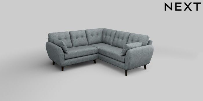 6.12.1 Buy Wilson Buttoned Back Small Corner Sofa - Universal Chunky Weave Mid Blue Retro Tapered - Dark from the Next UK online shop Click here to use our accessible website