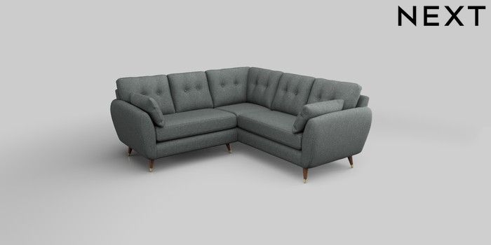 6.12.1 Buy Wilson Buttoned Back Small Corner Sofa - Universal Chunky Weave Mid Grey Low Retro Tapered Metal Cap - Mid from the Next UK online shop Click here to use our accessible website