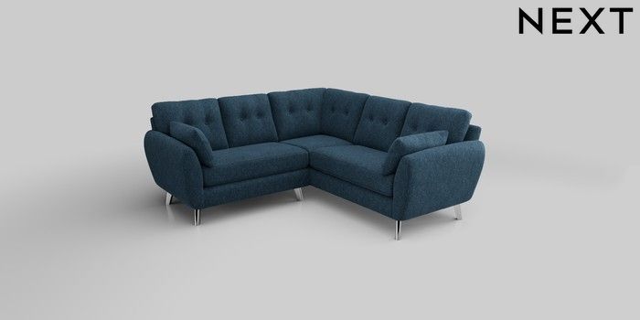 6.12.1 Buy Wilson Buttoned Back Small Corner Sofa - Universal Cotswold Chenille Dark Blue Metal Tapered - Chrome from the Next UK online shop Click here to use our accessible website