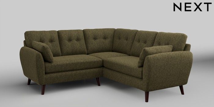 6.12.1 Buy Wilson Buttoned Back Small Corner Sofa - Universal Cotswold Chenille Dark Green Retro Tapered - Dark Brown from the Next UK online shop Click here to use our accessible website
