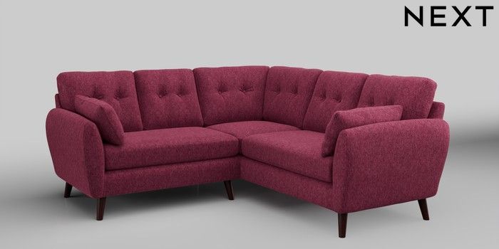 6.12.1 Buy Wilson Buttoned Back Small Corner Sofa - Universal Cotswold Chenille Dark Raspberry Pink Retro Tapered - Dark Brown from the Next UK online shop Click here to use our accessible website