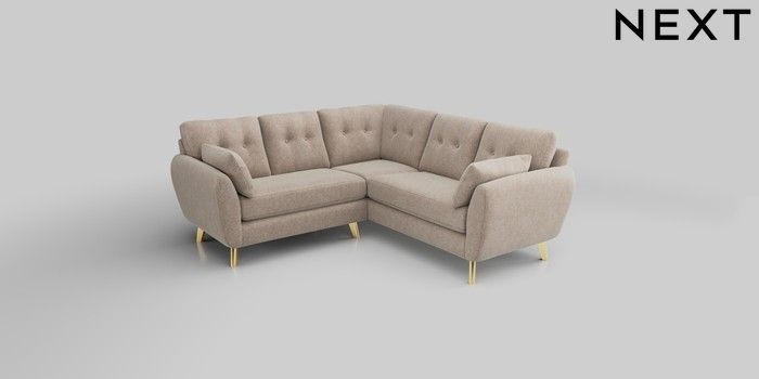 6.12.1 Buy Wilson Buttoned Back Small Corner Sofa - Universal Cotswold Chenille Light Natural Metal Tapered - Gold from the Next UK online shop Click here to use our accessible website