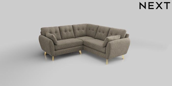6.12.1 Buy Wilson Buttoned Back Small Corner Sofa - Universal Cotswold Chenille Mid Mink Brown Metal Tapered - Gold from the Next UK online shop Click here to use our accessible website