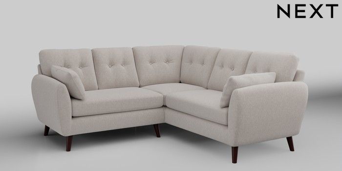 6.12.1 Buy Wilson Buttoned Back Small Corner Sofa - Universal Cotswold Chenille Oyster Retro Tapered - Dark Brown from the Next UK online shop Click here to use our accessible website