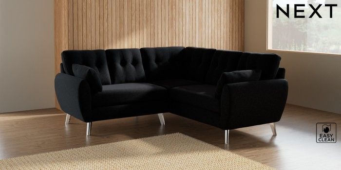 7.2.10 Buy Wilson Buttoned Back Small Corner Sofa - Universal Fine Chenille Easy Clean Black Metal Tapered - Chrome from the Next UK online shop Click here to use our accessible website