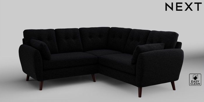 6.12.1 Buy Wilson Buttoned Back Small Corner Sofa - Universal Fine Chenille Easy Clean Black Retro Tapered - Dark Brown from the Next UK online shop Click here to use our accessible website