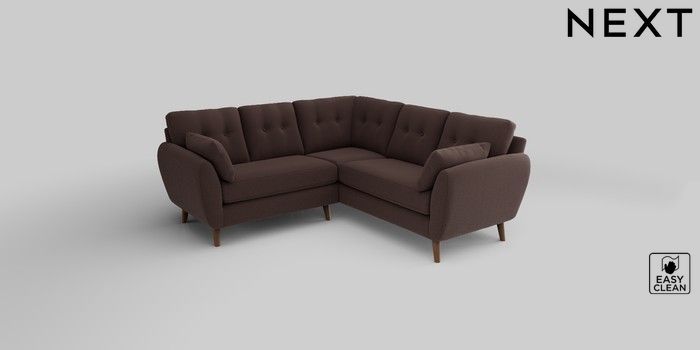 6.12.1 Buy Wilson Buttoned Back Small Corner Sofa - Universal Fine Chenille Easy Clean Chocolate Brown Retro Tapered - Mid from the Next UK online shop Click here to use our accessible website