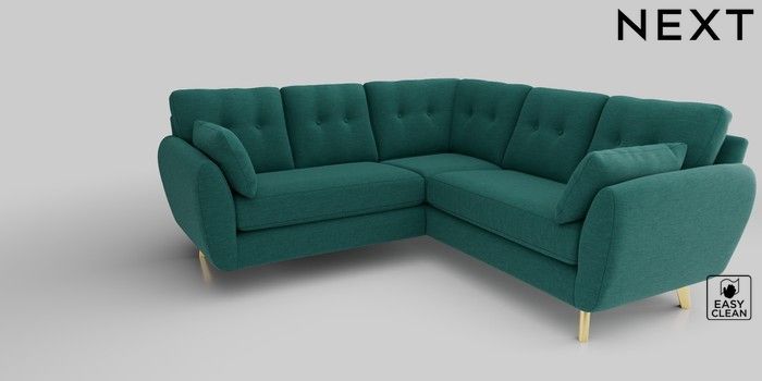 6.12.1 Buy Wilson Buttoned Back Small Corner Sofa - Universal Fine Chenille Easy Clean Dark Juniper Green Metal Tapered - Gold from the Next UK online shop Click here to use our accessible website