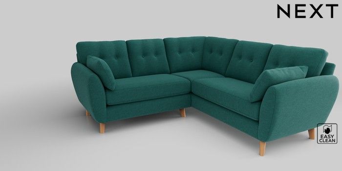6.12.1 Buy Wilson Buttoned Back Small Corner Sofa - Universal Fine Chenille Easy Clean Dark Juniper Green Retro Tapered - Light from the Next UK online shop Click here to use our accessible website