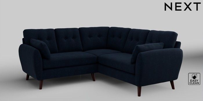 6.12.1 Buy Wilson Buttoned Back Small Corner Sofa - Universal Fine Chenille Easy Clean Dark Navy Blue Retro Tapered - Dark Brown from the Next UK online shop Click here to use our accessible website