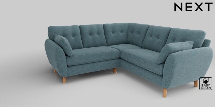 6.12.1 Buy Wilson Buttoned Back Small Corner Sofa - Universal Fine Chenille Easy Clean Mid Blue Retro Tapered - Light from the Next UK online shop Click here to use our accessible website