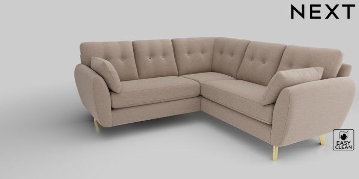 6.12.1 Buy Wilson Buttoned Back Small Corner Sofa - Universal Fine Chenille Easy Clean Mid Taupe Brown Metal Tapered - Gold from the Next UK online shop Click here to use our accessible website