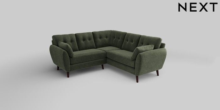 6.12.1 Buy Wilson Buttoned Back Small Corner Sofa - Universal Luxe Chenille Mid Green Retro Tapered - Dark Brown from the Next UK online shop Click here to use our accessible website