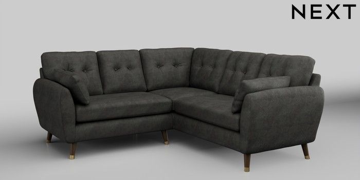 6.12.1 Buy Wilson Buttoned Back Small Corner Sofa - Universal Monza Faux Leather Easy Clean Dark Grey Low Retro Tapered Metal Cap - Mid from the Next UK online shop Click here to use our accessible website