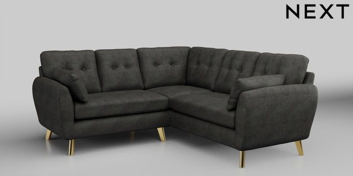 6.12.1 Buy Wilson Buttoned Back Small Corner Sofa - Universal Monza Faux Leather Easy Clean Dark Grey Metal Tapered - Gold from the Next UK online shop Click here to use our accessible website