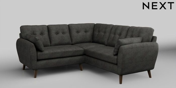 6.12.1 Buy Wilson Buttoned Back Small Corner Sofa - Universal Monza Faux Leather Easy Clean Dark Grey Retro Tapered - Mid from the Next UK online shop Click here to use our accessible website