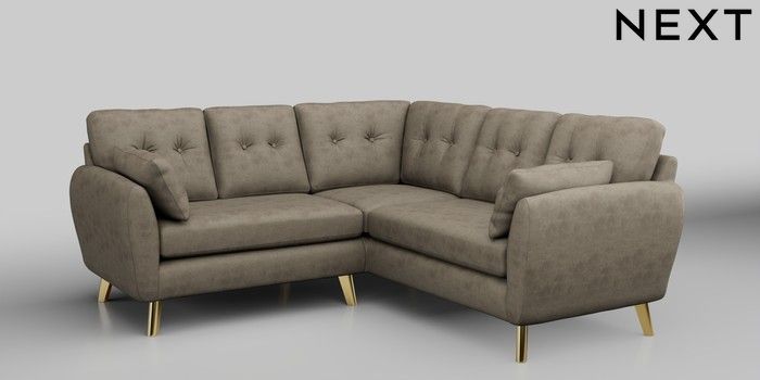 6.12.1 Buy Wilson Buttoned Back Small Corner Sofa - Universal Monza Faux Leather Easy Clean Mink Brown Metal Tapered - Gold from the Next UK online shop Click here to use our accessible website