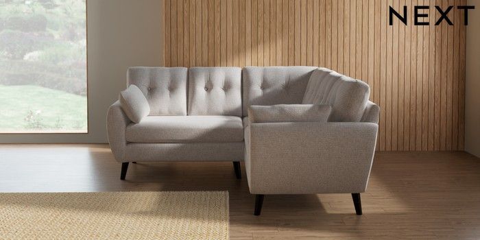 7.3.1 Buy Wilson Buttoned Back Small Corner Sofa - Universal Multi Weave Oyster Retro Tapered - Dark from the Next UK online shop