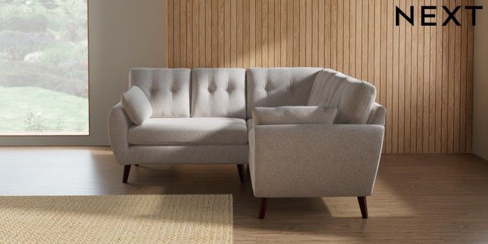7.3.1 Buy Wilson Buttoned Back Small Corner Sofa - Universal Multi Weave Oyster Retro Tapered - Dark Brown from the Next UK online shop