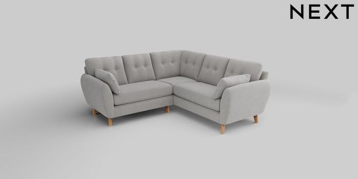 6.12.1 Buy Wilson Buttoned Back Small Corner Sofa - Universal Natural Mix Light Grey Retro Tapered - Light from the Next UK online shop Click here to use our accessible website