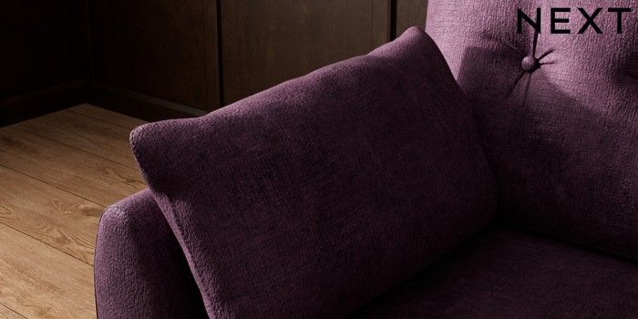 7.3.1 Buy Wilson Buttoned Back Small Corner Sofa - Universal Plush Chenille Dark Plum Purple Low Retro Tapered Metal Cap - Mid from the Next UK online shop Click here to use our accessible website