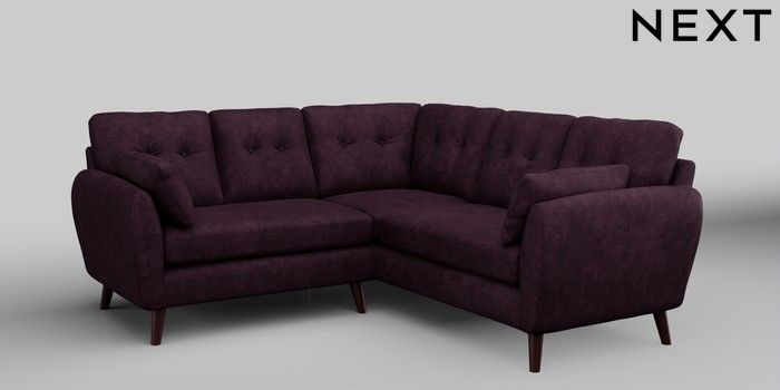 6.12.1 Buy Wilson Buttoned Back Small Corner Sofa - Universal Plush Chenille Dark Plum Purple Retro Tapered - Dark Brown from the Next UK online shop Click here to use our accessible website