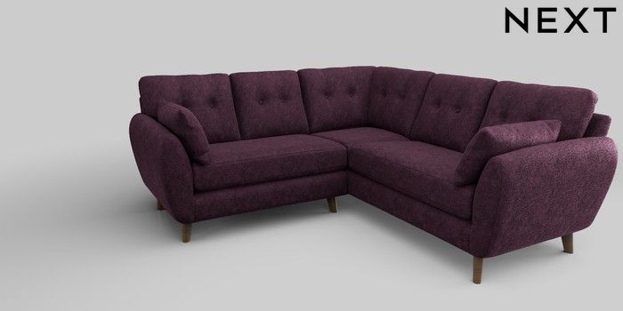 6.12.1 Buy Wilson Buttoned Back Small Corner Sofa - Universal Plush Chenille Dark Plum Purple Retro Tapered - Mid from the Next UK online shop Click here to use our accessible website