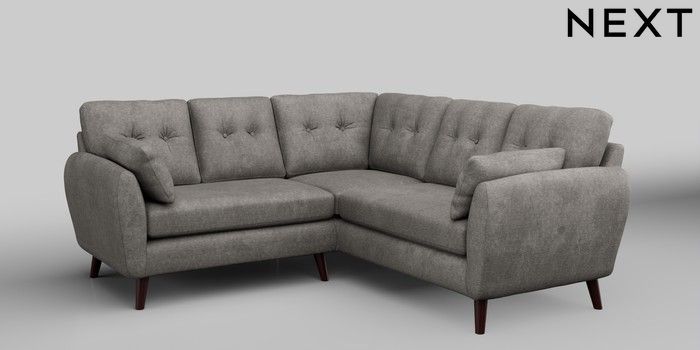 6.12.1 Buy Wilson Buttoned Back Small Corner Sofa - Universal Plush Chenille Light Grey Retro Tapered - Dark Brown from the Next UK online shop Click here to use our accessible website