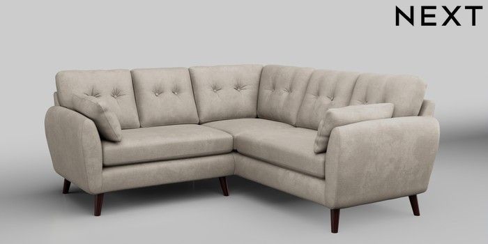 6.12.1 Buy Wilson Buttoned Back Small Corner Sofa - Universal Plush Chenille Oyster Retro Tapered - Dark Brown from the Next UK online shop Click here to use our accessible website