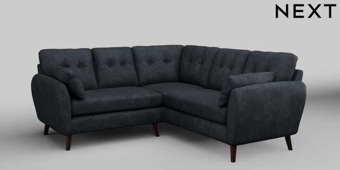 6.12.1 Buy Wilson Buttoned Back Small Corner Sofa - Universal Plush Chenille Slate Blue Retro Tapered - Dark Brown from the Next UK online shop Click here to use our accessible website