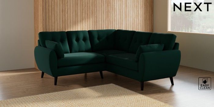 7.3.1 Buy Wilson Buttoned Back Small Corner Sofa - Universal Plush Velvet Easy Clean Bottle Green Retro Tapered - Dark from the Next UK online shop Click here to use our accessible website