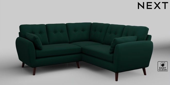 6.12.1 Buy Wilson Buttoned Back Small Corner Sofa - Universal Plush Velvet Easy Clean Bottle Green Retro Tapered - Dark Brown from the Next UK online shop Click here to use our accessible website