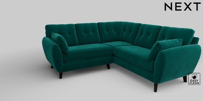 6.12.1 Buy Wilson Buttoned Back Small Corner Sofa - Universal Plush Velvet Easy Clean Juniper Green Retro Tapered - Dark from the Next UK online shop Click here to use our accessible website