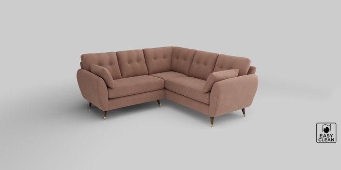 6.12.13 Buy Wilson Buttoned Back Small Corner Sofa - Universal Plush Velvet Easy Clean Mid Natural Low Retro Tapered Metal Cap - Mid from the Next UK online shop Click here to use our accessible website