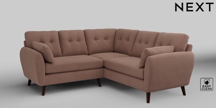 6.12.1 Buy Wilson Buttoned Back Small Corner Sofa - Universal Plush Velvet Easy Clean Mid Natural Retro Tapered - Dark Brown from the Next UK online shop Click here to use our accessible website