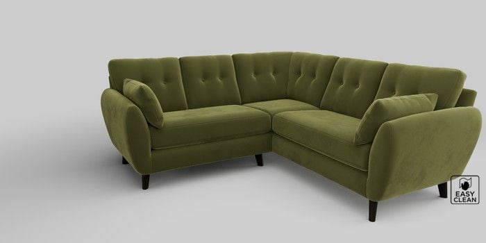 6.12.1 Buy Wilson Buttoned Back Small Corner Sofa - Universal Plush Velvet Easy Clean Mid Olive Green Retro Tapered - Dark from the Next UK online shop Click here to use our accessible website