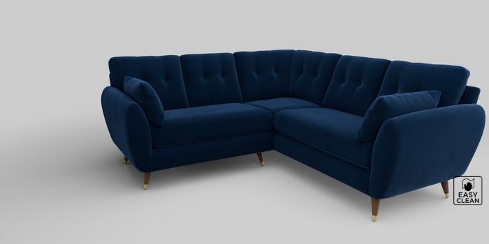 6.12.1 Buy Wilson Buttoned Back Small Corner Sofa - Universal Plush Velvet Easy Clean Navy Blue Low Retro Tapered Metal Cap - Mid from the Next UK online shop Click here to use our accessible website