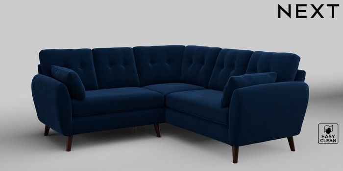 6.12.1 Buy Wilson Buttoned Back Small Corner Sofa - Universal Plush Velvet Easy Clean Navy Blue Retro Tapered - Dark Brown from the Next UK online shop Click here to use our accessible website
