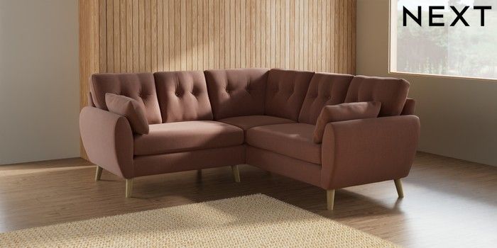 7.2.10 Buy Wilson Buttoned Back Small Corner Sofa - Universal Relaxed Linen Look Light Rust Brown Retro Tapered - Light from the Next UK online shop Click here to use our accessible website