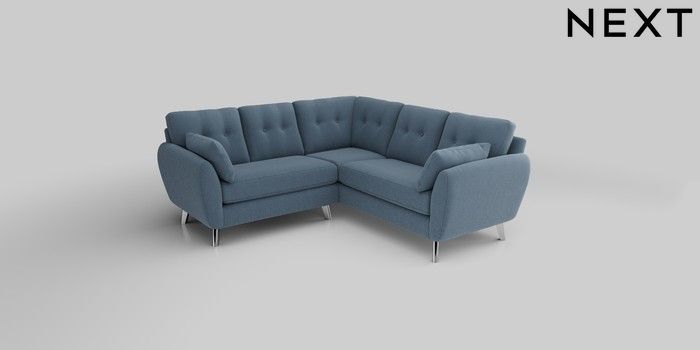 6.12.1 Buy Wilson Buttoned Back Small Corner Sofa - Universal Relaxed Linen Look Mid Blue Metal Tapered - Chrome from the Next UK online shop Click here to use our accessible website