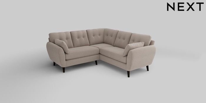 6.12.1 Buy Wilson Buttoned Back Small Corner Sofa - Universal Relaxed Linen Look Mid Natural Retro Tapered - Dark from the Next UK online shop Click here to use our accessible website