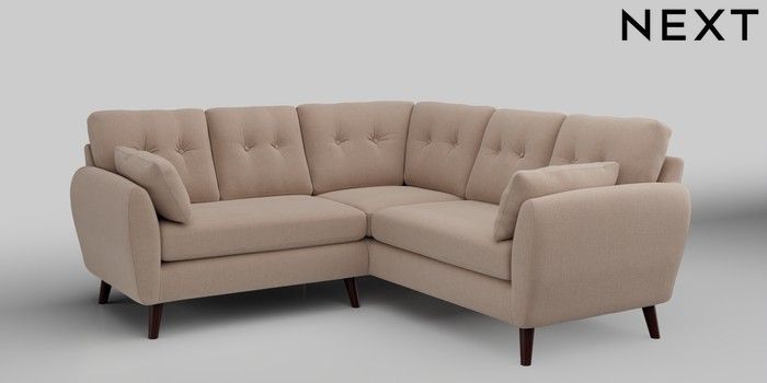 6.12.1 Buy Wilson Buttoned Back Small Corner Sofa - Universal Relaxed Linen Look Mid Natural Retro Tapered - Dark Brown from the Next UK online shop Click here to use our accessible website