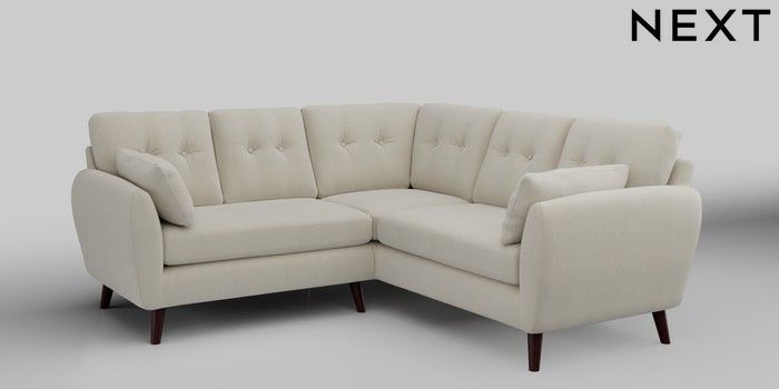 6.12.1 Buy Wilson Buttoned Back Small Corner Sofa - Universal Relaxed Linen Look Oyster Retro Tapered - Dark Brown from the Next UK online shop Click here to use our accessible website
