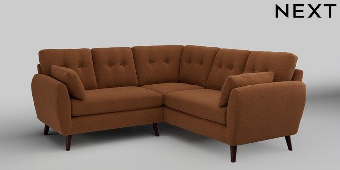 6.12.1 Buy Wilson Buttoned Back Small Corner Sofa - Universal Ripple Chenille Mid Rust Brown Retro Tapered - Dark Brown from the Next UK online shop Click here to use our accessible website