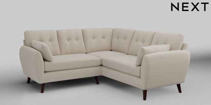 6.12.1 Buy Wilson Buttoned Back Small Corner Sofa - Universal Studio Chenille Oyster Retro Tapered - Dark Brown from the Next UK online shop Click here to use our accessible website