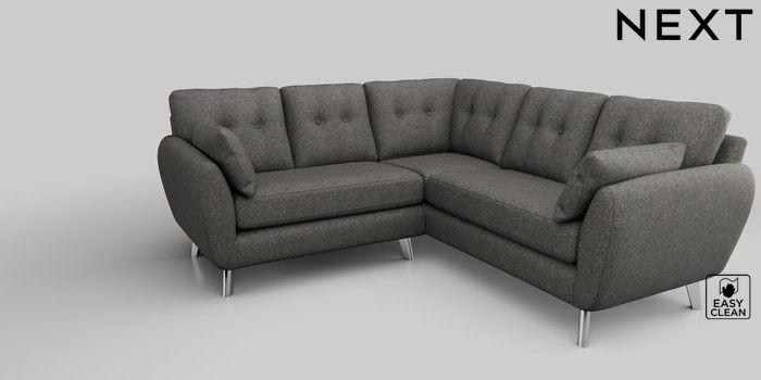 6.12.1 Buy Wilson Buttoned Back Small Corner Sofa - Universal Tweedy Blend Easy Clean Dark Grey Metal Tapered - Chrome from the Next UK online shop Click here to use our accessible website