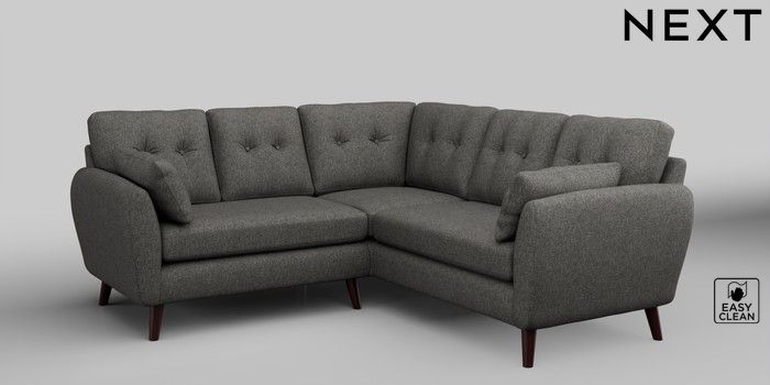 6.12.1 Buy Wilson Buttoned Back Small Corner Sofa - Universal Tweedy Blend Easy Clean Dark Grey Retro Tapered - Dark Brown from the Next UK online shop Click here to use our accessible website