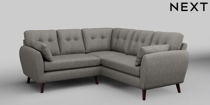 6.12.1 Buy Wilson Buttoned Back Small Corner Sofa - Universal Tweedy Chenille Mid Grey Retro Tapered - Dark Brown from the Next UK online shop Click here to use our accessible website